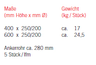 Installation: Mittels Ankerrohr Befestigung im Fundament aus Frischbeton.