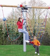 Ein schneller Aufstieg und dann geht's rund: Das Kletter-Rondell - eine große Plattform für Spiele vielfältiger Art. Art.-Nr. 20.01.050 Material + Maße:- 1 Stahlmast, ∅ 20 cm, 3,8 m lang