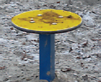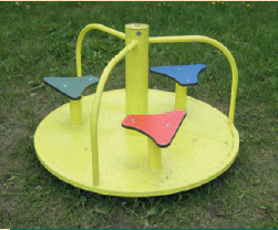 Kleinkinder-Sitzkarusell, verzinkt und pulverbeschichtet, ∅ 1,00 m, 3 Sitze aus HPL, Platzbedarf: ∅ 5,00 m.
