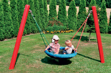 Metall-Kleinkinder-Vogelnestschaukel, aus Rundrohr &Empty; 114 mm, verzinkt und pulverbeschichtet, Höhe: 1,40 m, ∅ Vogelnest 0,90 m, Platzbedarf: ca. 3,0 x 5,60 m.