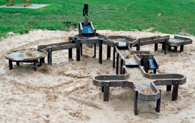 Recycling Wassermatschanlage "Poseidon", Pumpe für Druckwasser, Podest, Rinnen, Tische und Standfüsse